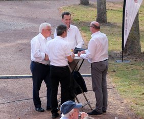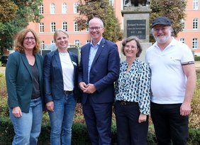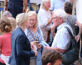 Zum Festakt konnte Dr. Mareike Beer auch alle bisherigen VHS-Leitungen in Warendorf begrüßen: Hubert Witte (Leiter der VHS von 1975-1992), Dr. Werner Gummersbach (VHS-Leitung von 1992-1997) und Rolf Zurbrüggen, der die VHS von 1997 bis 2024 leitete.