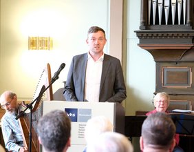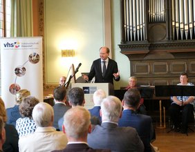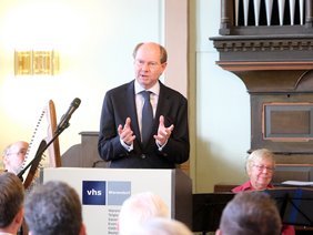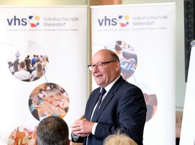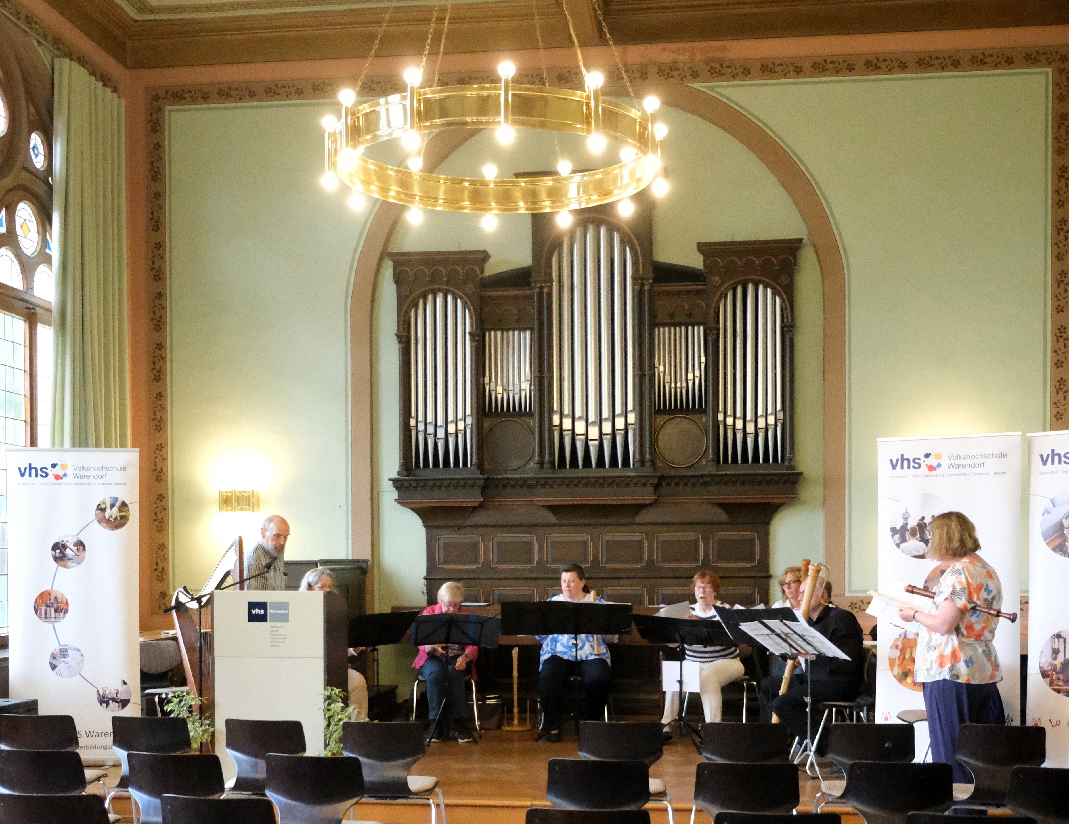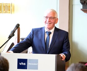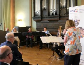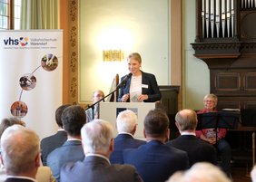 Musikalisch begleitet vom Blockflötenensemble der VHS hob Landrat Gericke in seiner Ansprache die Bedeutung des lebenslangen Lernens hervor und auch Bürgermeister Horstmann würdigte die Arbeit der Volkshochschule. Mit einem Einzugsgebiet von über 100.000 Menschen sei sie eine unverzichtbare Einrichtung in der Bildungslandschaft.
