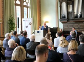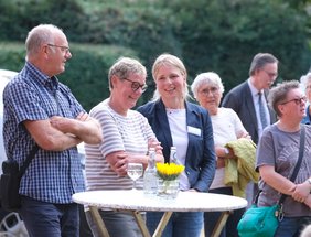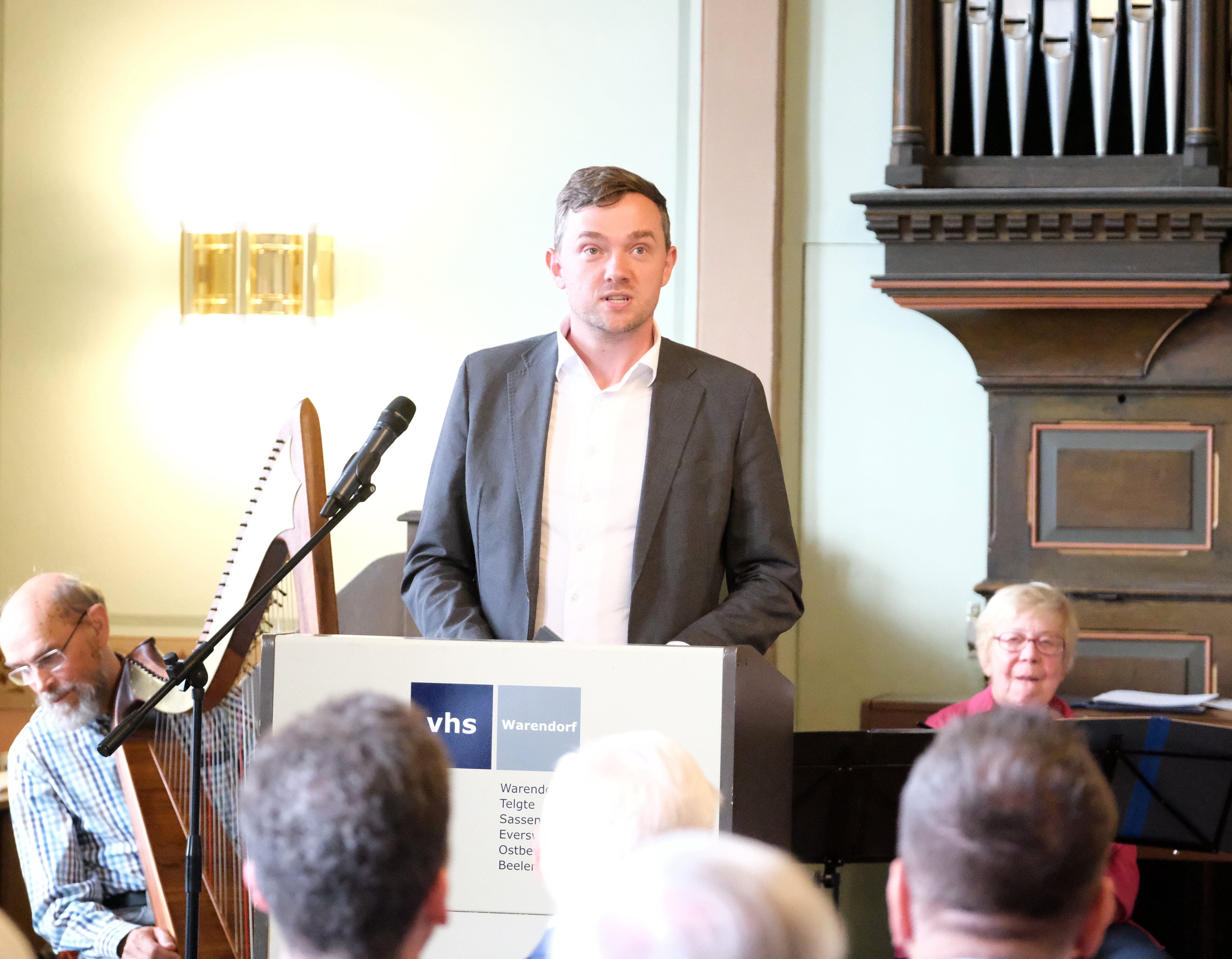 Daneben kamen weitere zahlreiche Gäste aus Politik, Verwaltung und Bildung zusammen. Unter ihnen die Bürgermeister Josef Uphoff (Sassenberg), Karl Piochowiak (Ostbevern), Sebastian Seidel (Everswinkel), Rolf Mestekemper (Beelen) sowie Warendorfs Bürgermeister Peter Horstmann. In Vertretung von Bürgermeister Wolfgang Pieper war Stefan herzig von der Stadt Telgte beim Festakt dabei. Auch Landrat Olaf Gericke und Landtagsabgeordneter Daniel Hagemeier ließen es sich nicht nehmen, persönlich zu gratulieren und die Bedeutung der VHS für die Region hervorzuheben.
