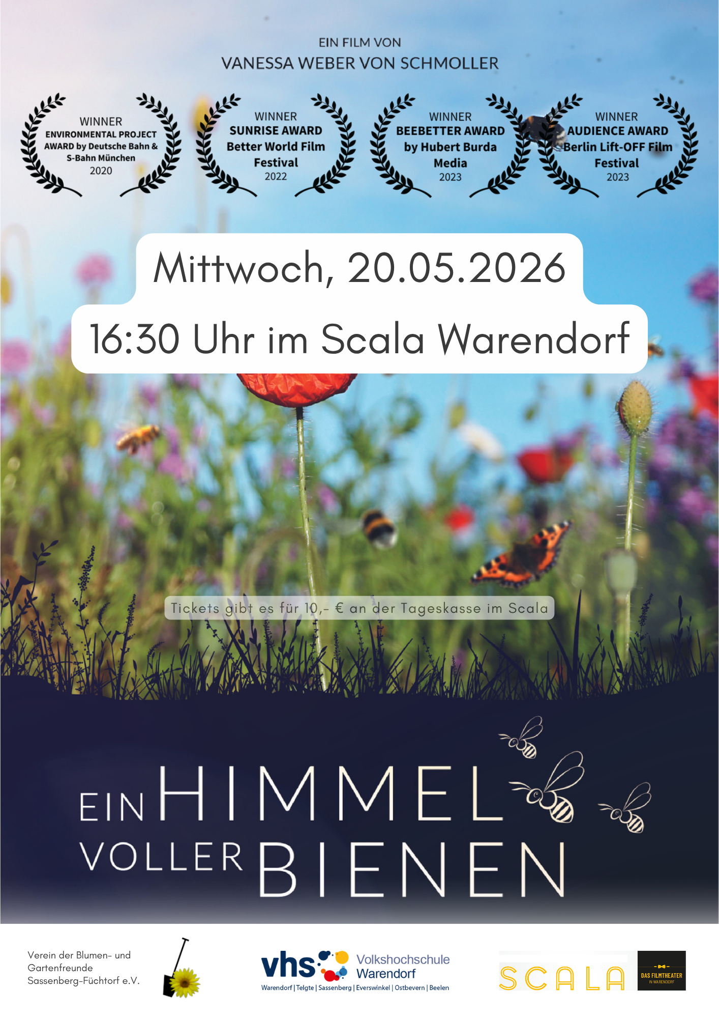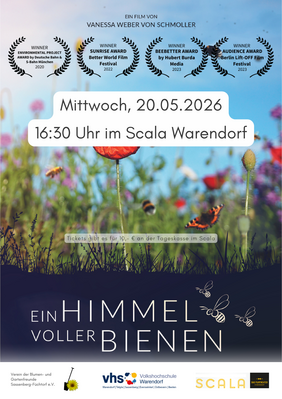 Anlässlich des internationalen UN-Weltbienentages laden die VHS Warendorf, der Verein „Blumen- und Gartenfreunde Sassenberg-Füchtorf e.V.“ und das Scala Warendorf herzlich zu einem besonderen Filmnachmittag ein.