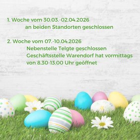 In der zweiten Ferienwoche hat der Standort Warendorf vormittags geöffnet - das Team bittet um Beachtung und wünscht frohe Ostern!